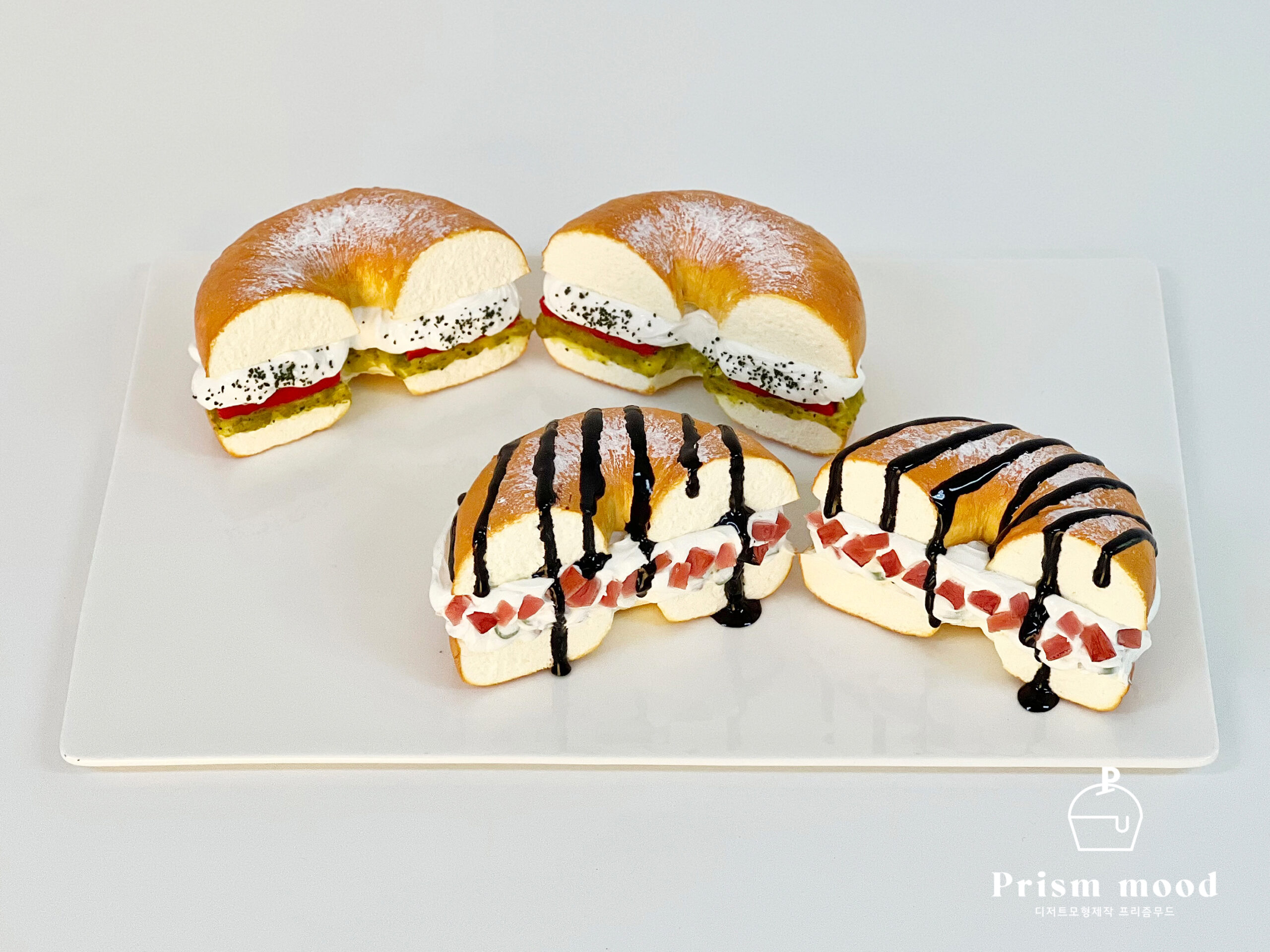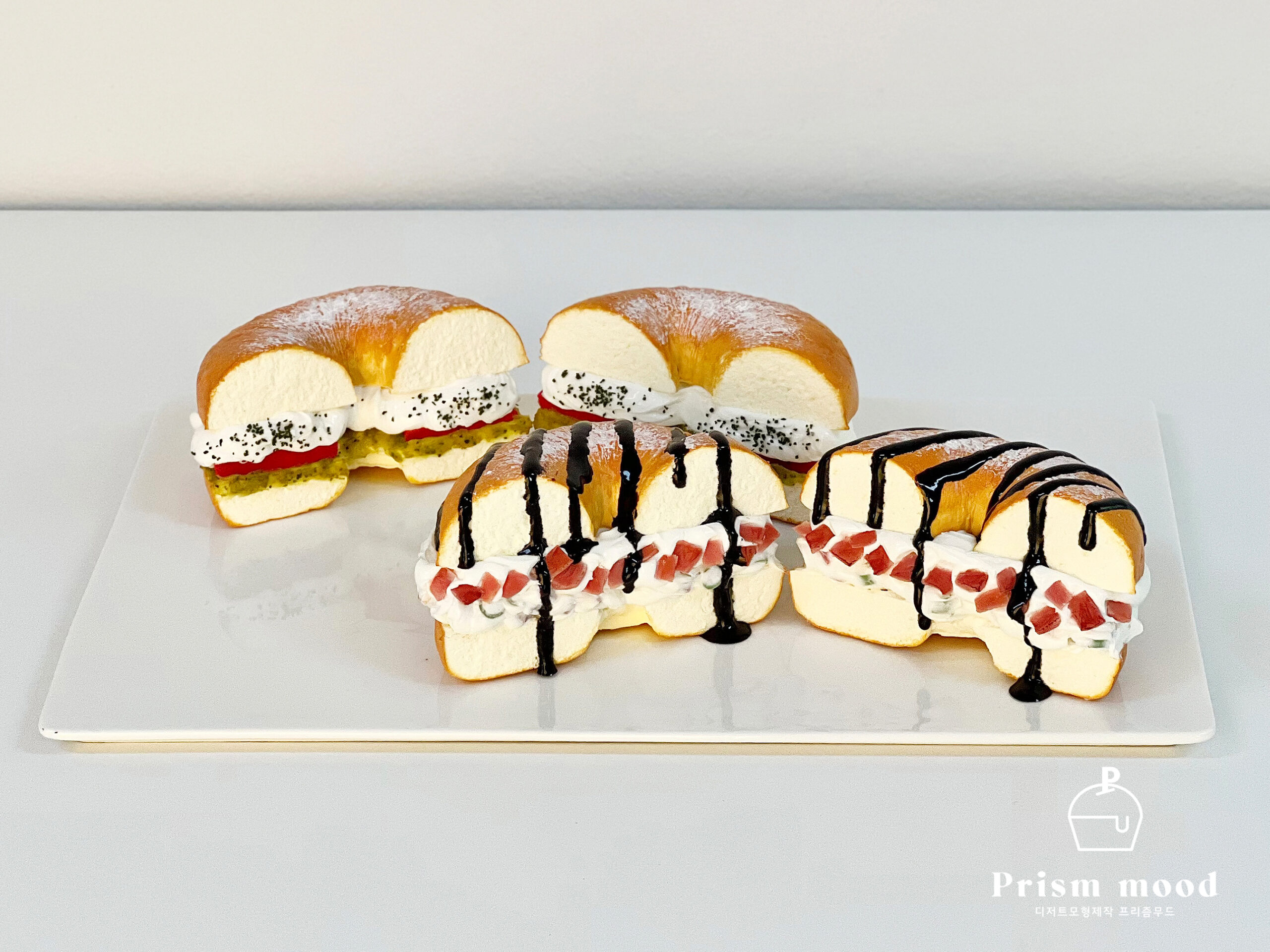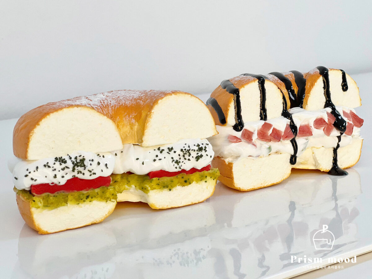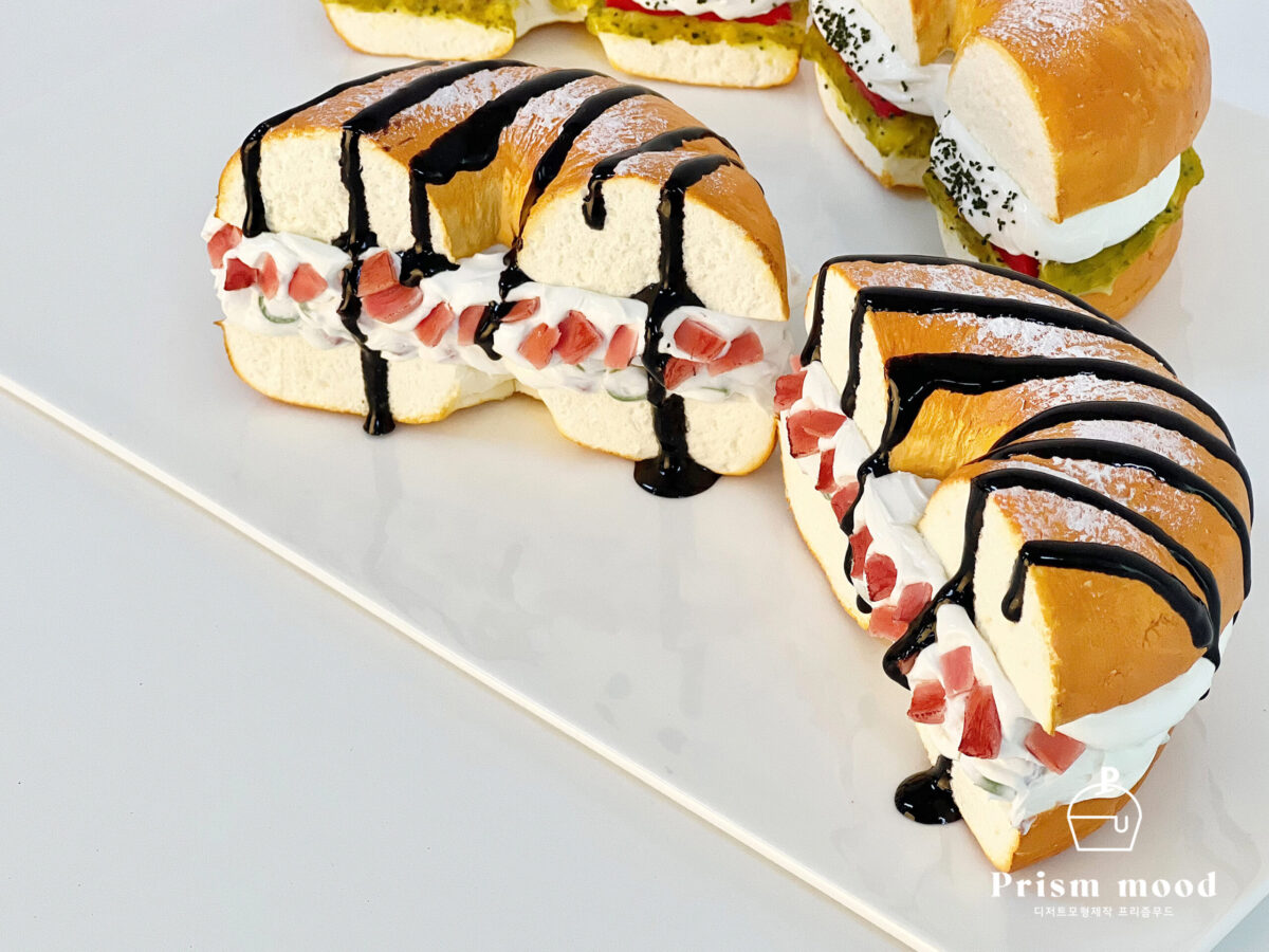 바질토마토 베이컨 베이글 모형